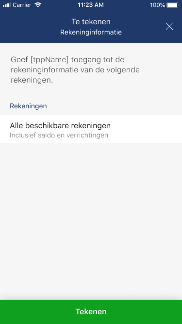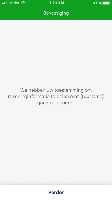 Before being redirected to the TPP App, the PSU will access a redirection screen with some context related to the given authorisation. This screen is slightly different for AIS and PIS.