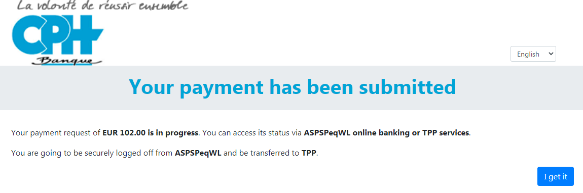 In order to test this redirect approach, the sandbox provides a graphical user interface in order to simulate all the possible SCA scenarios (Login fails, timeout, SCA rejected…) that are listed below: